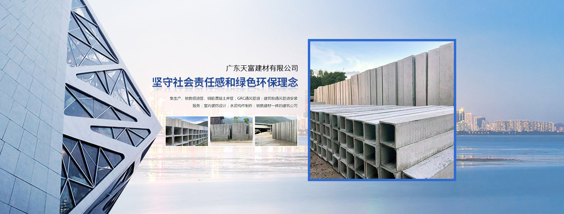 廣東天富建材有限公司是集生產(chǎn)、銷(xiāo)售煙道管、鋼筋混凝土井管、GRC通風(fēng)管道,建筑物通風(fēng)管道安裝服務(wù)、室內(nèi)裝飾設(shè)計(jì)、水泥構(gòu)件制作于一體的建筑公司。公司擁有一支高素質(zhì)、高水平、年輕的團(tuán)隊(duì),秉承“品質(zhì)·服務(wù)”的經(jīng)營(yíng)理念,為客戶(hù)提供科學(xué)經(jīng)濟(jì)的方案及技術(shù)指導(dǎo)。